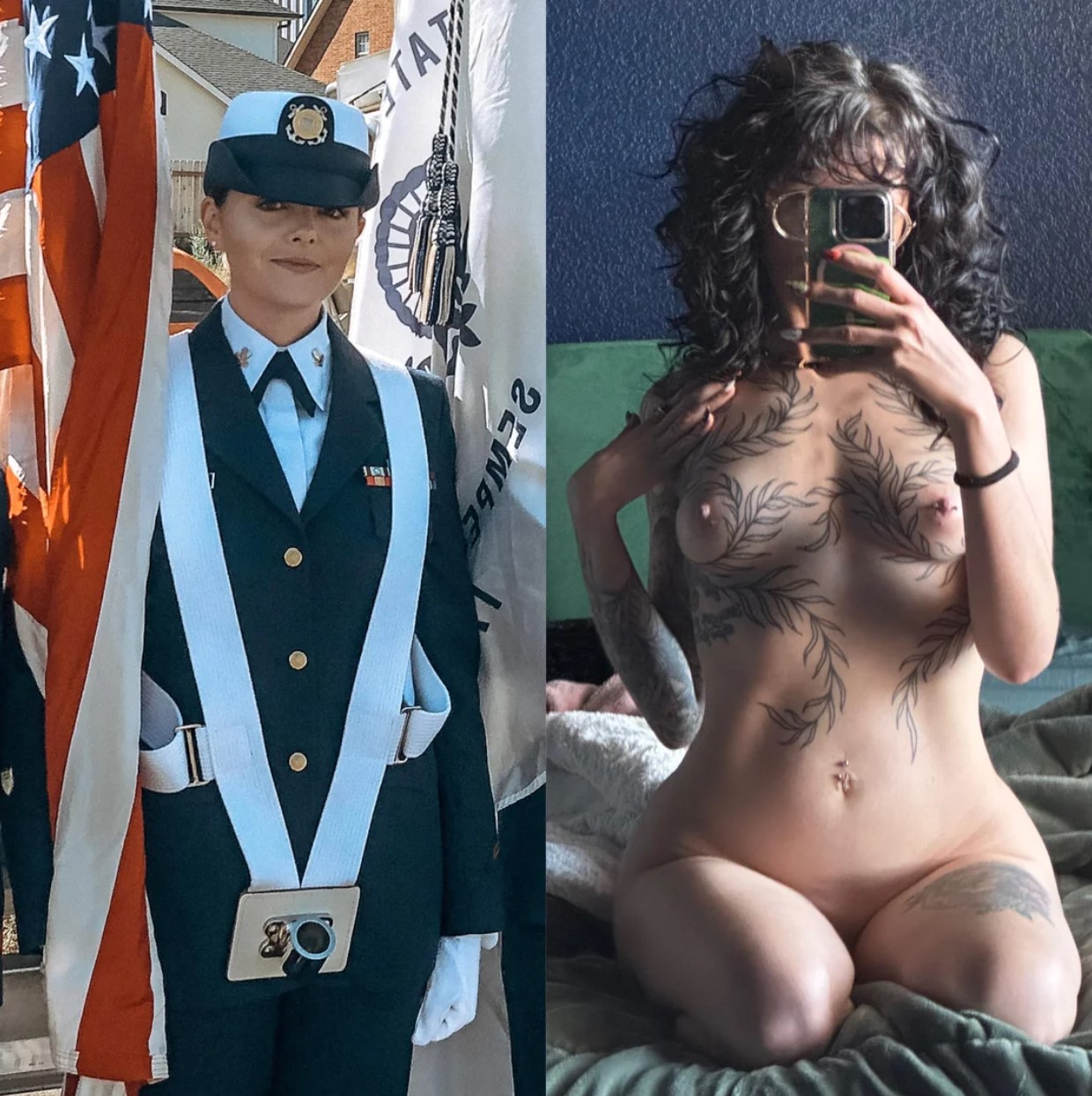 Women that are in some type of service that wears a uniform both on and off any woman nude or not but you know wear a uniform
